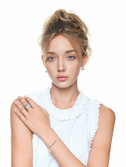 13DE MARZO Bear Print with Rhinestone T-shirt Grey