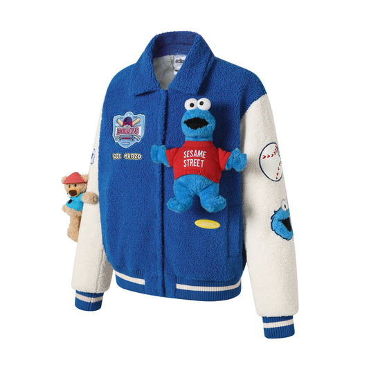 • 13DE MARZO Cookie Monster Bear Baseball Varsity Jacket - 13DE MARZO