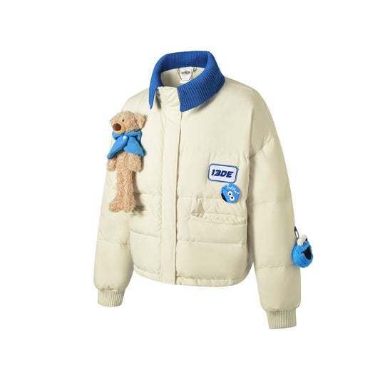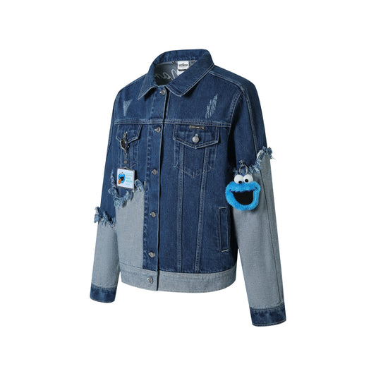 13DE MARZO Cookie Monster Bear Patchwork Denim Jacket