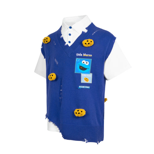 13DE MARZO Cookie Monster Knit Vest With T-shirt