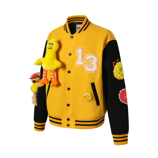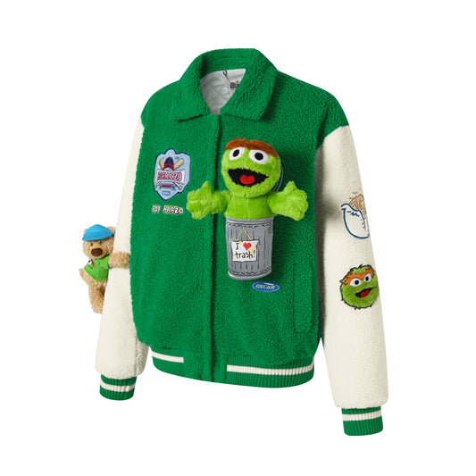 13DE MARZO Cookie Monster Bear Baseball Varsity Jacket