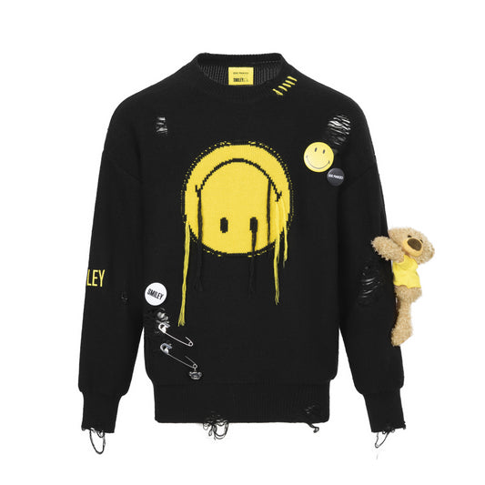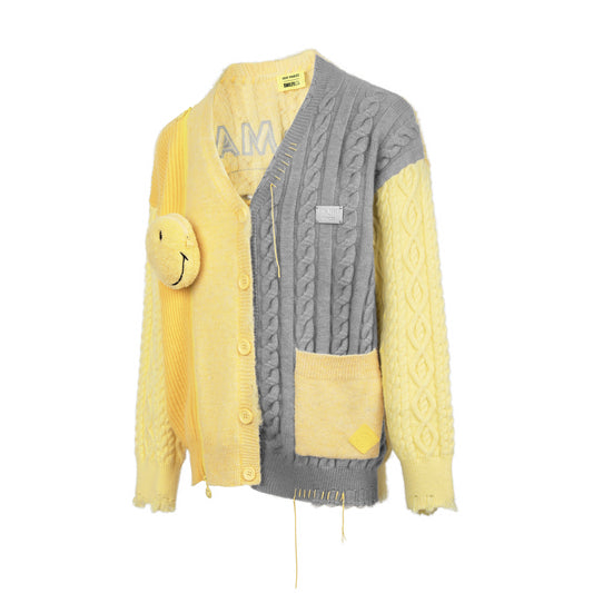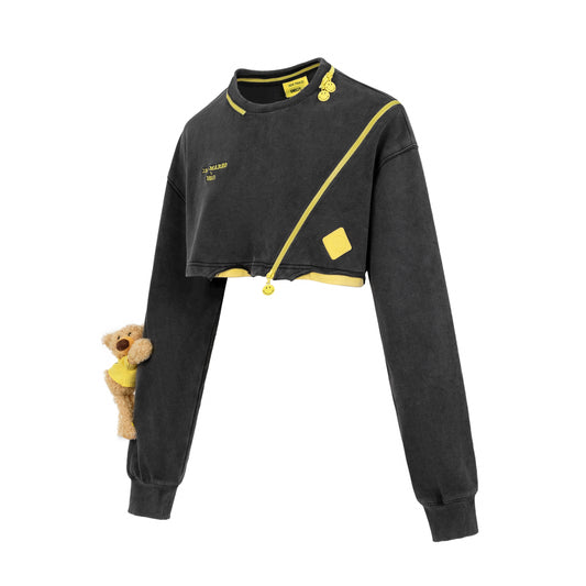 13DE MARZO Bear Sleeve Zip Knit Sweater
