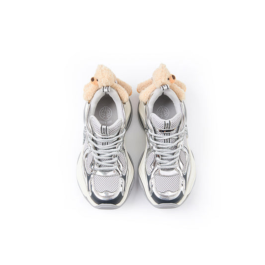 13DE MARZO Bear Fuzzy Snow Slippers Silver