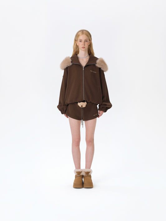 13DE MARZO Bear Fuzzy Snow Slippers Khaki
