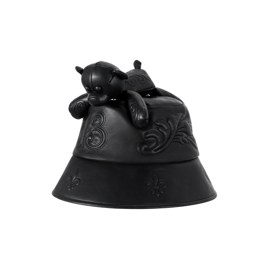 13DE MARZO Bear Dark Suture Leather Bucket Hat