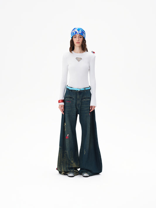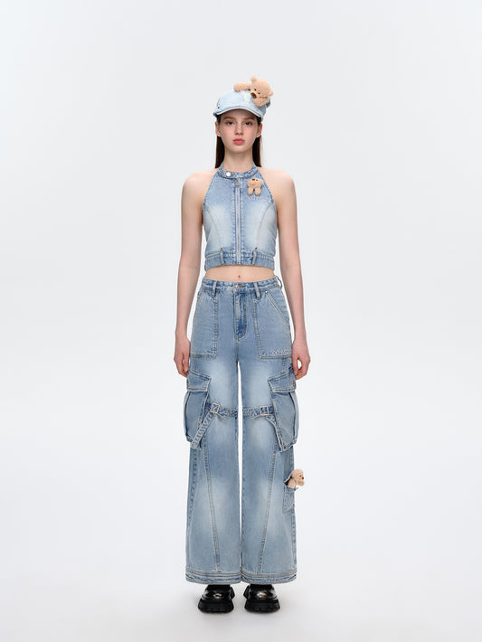 13DE MARZO Bear Rhinestone Plaid Shirt