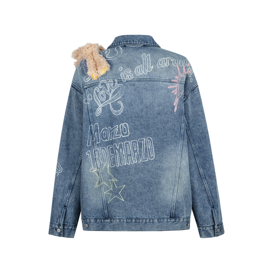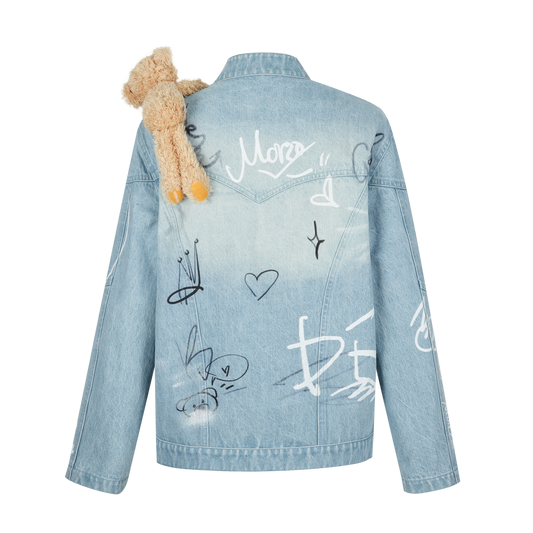 13DE MARZO Graffiti Bear Racing Denim Jacket