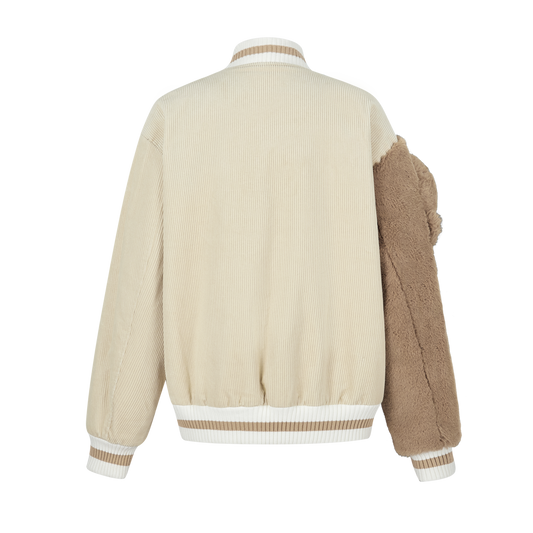 13DE MARZO Bear Sleeve Corduroy Baseball Jacket
