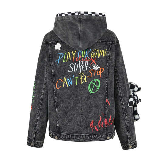 13DE MARZO Sketch Line Hooded Denim Jacket