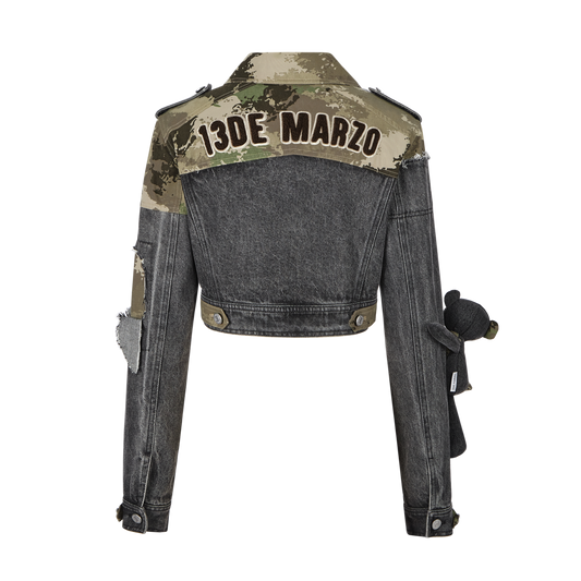 13DE MARZO Crystal Erosion Bear Denim Jacket