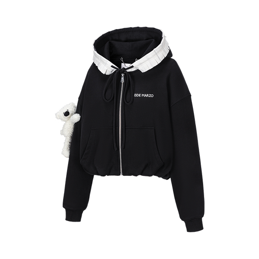 13DE MARZO Lace Edge Zip Hoodie Grey