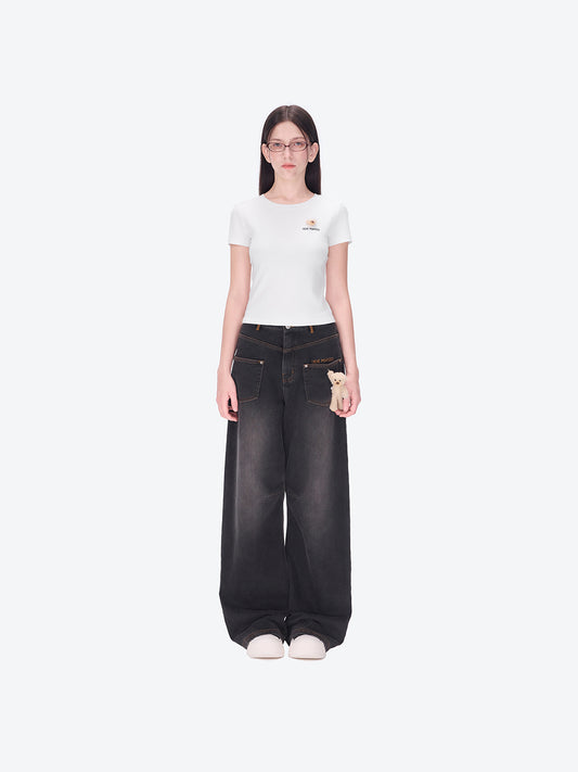 13DE MARZO Bear Brushed Relaxed Jeans Black