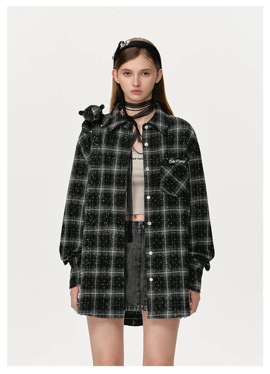• 13DE MARZO Bear Rhinestone Plaid Shirt - 13DE MARZO