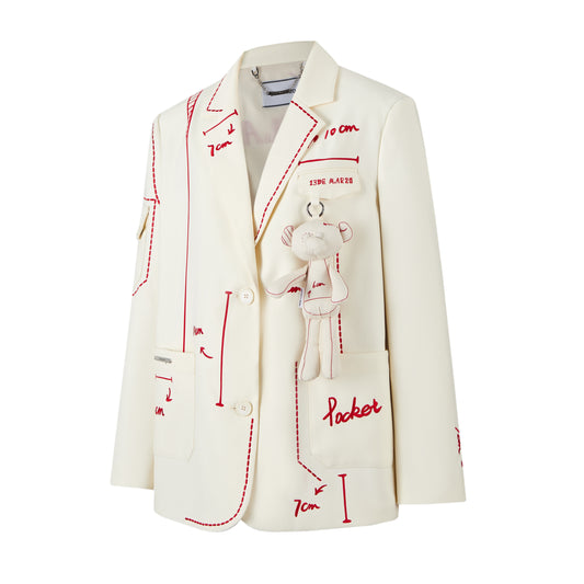 • 13DE MARZO Retro Bear Tweed Patch Suit - 13DE MARZO