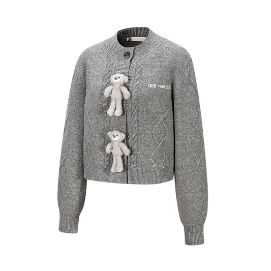 13DE MARZO Bear Thin Scarf Sweater Dark Grey