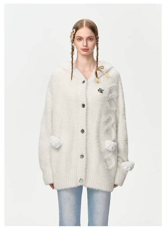 13DE MARZO Fuzzy Weave Knit Cardigan