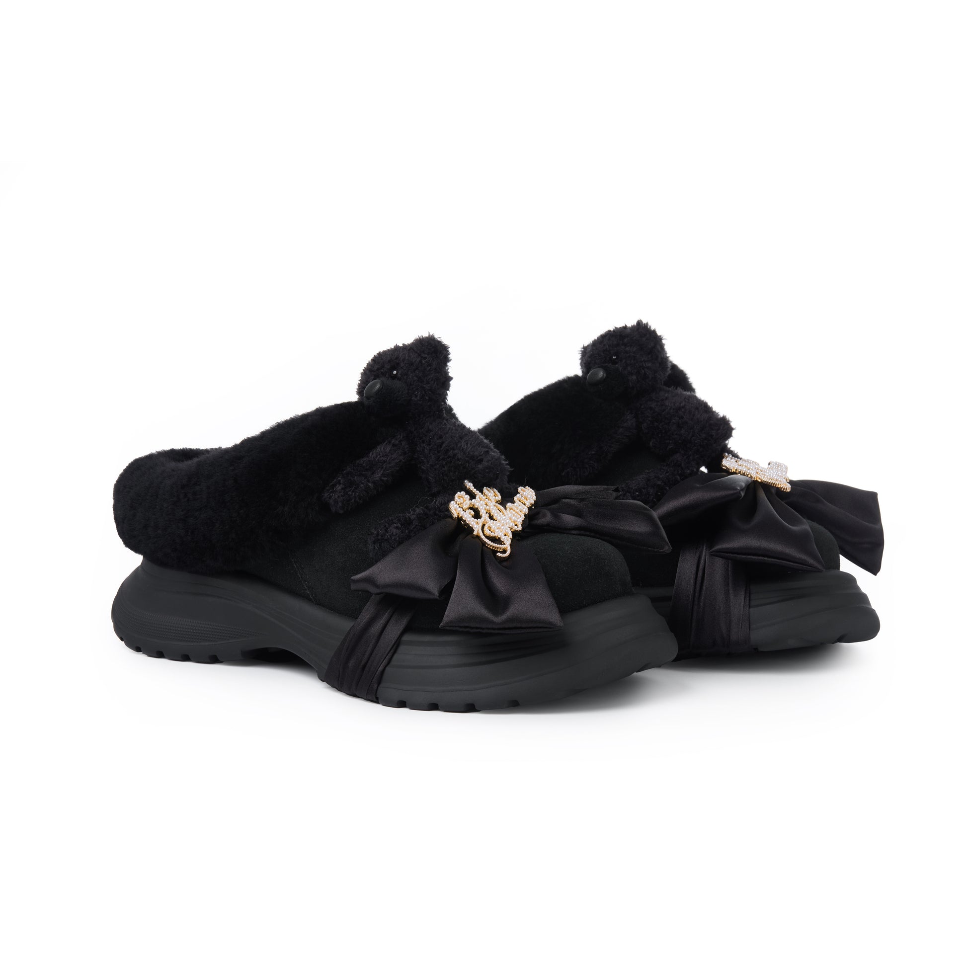 13DE MARZO Bear Fuzzy Snow Slippers Black