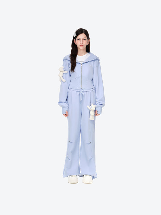 13DE MARZO Tapered Waist Bear Zip Hoodie Blue