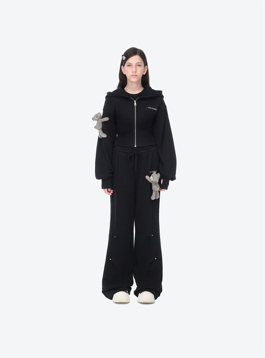 13DE MARZO Tapered Waist Bear Zip Hoodie Black