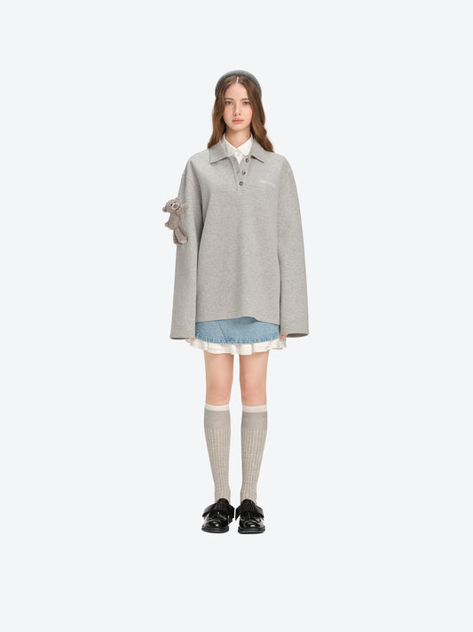 13DE MARZO Bow Detail Bear Print Sweatshirt