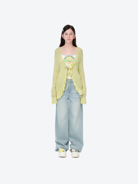 13DE MARZO Floral Lines Hollow Cardigan Green