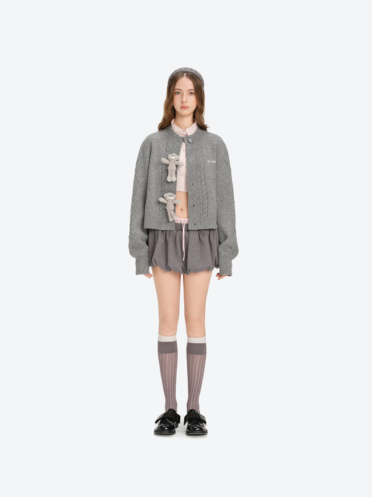 13DE MARZO Sparkle Pearl Chain Cardigan Dark Grey