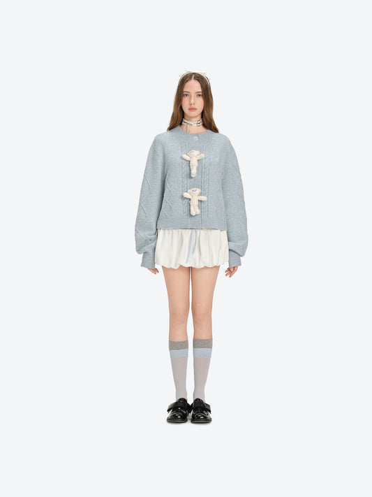 13DE MARZO Rebel Clown Bear Hollow Sweater White