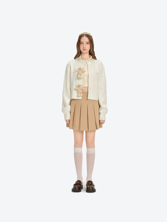 13DE MARZO Floral Lines Hollow Cardigan Beige