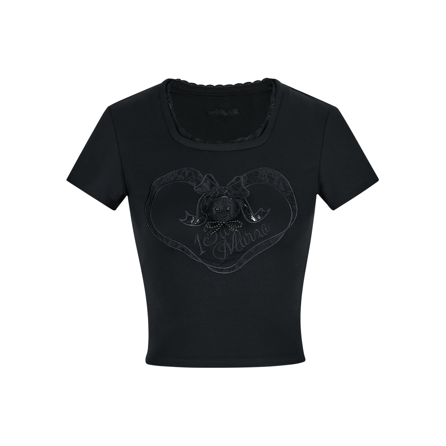 This design features a clean, simple slim fit silhouette crafted from soft, skin-friendly water cotton for a gentle and comfortable feel. The delicate pattern combines hearts, lace, and bear elements, infusing the garment with a sweet and tender charm. Muted tones of gray, blue, and black perfectly complement the slim cut and soft fabric, creating a refined and subtle look. Embrace life’s beauty and yourself with this cozy, delicate piece.