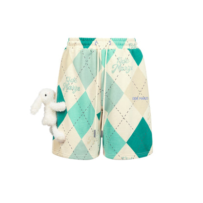 13DE MARZO Bunny Vintage Diamond Pattern Shorts
