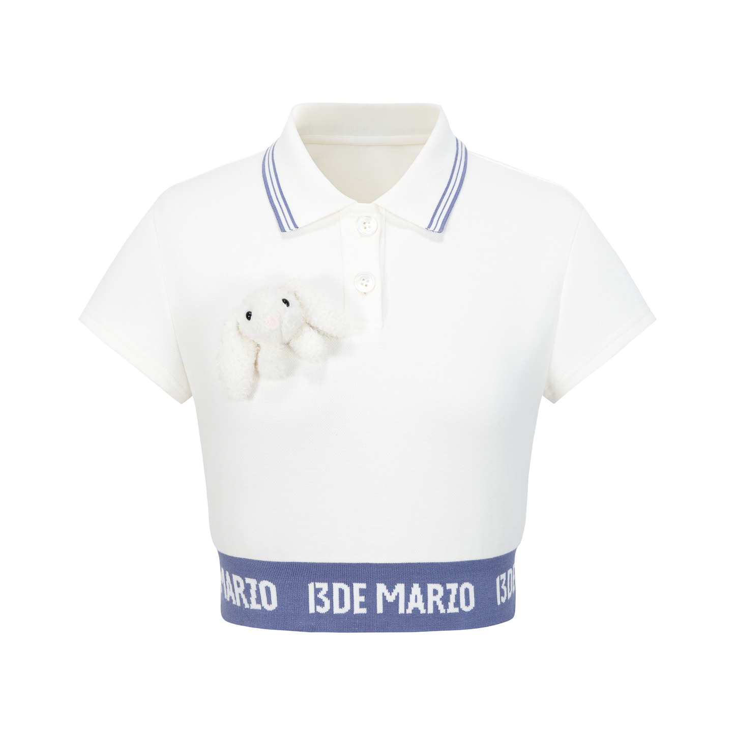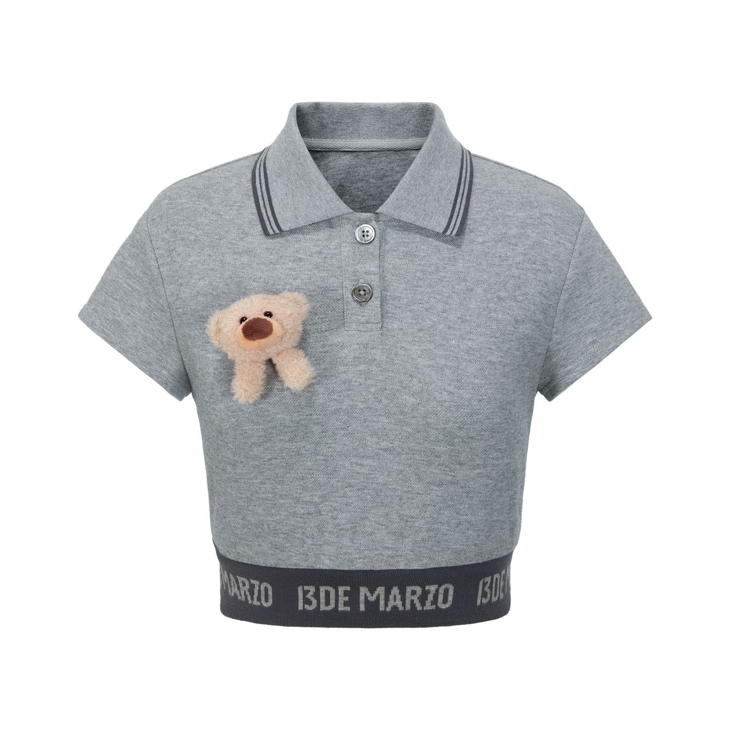 This cropped polo tee is the perfect blend of elegance and casual style. Designed to cinch the waist and highlight your silhouette, it features a soft knit collar for added comfort and refined style. The jacquard logo adds a touch of brand detail, while the plush bear pin on the chest is detachable—perfect for switching up your look. Made from textured and breathable piqué fabric, it keeps you cool and comfy during warmer days. Pair it with jeans, skirts, or shorts for a variety of effortless, stylish outfits.