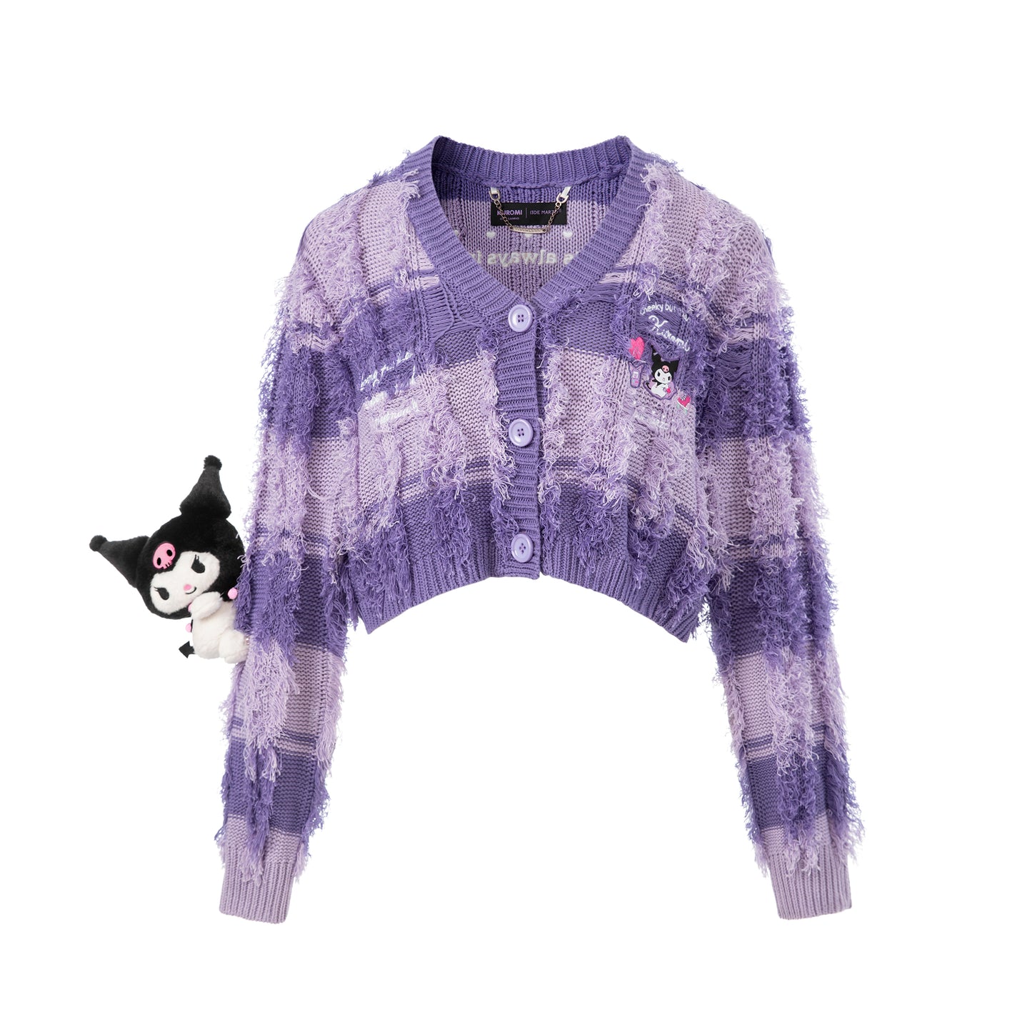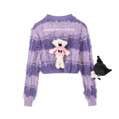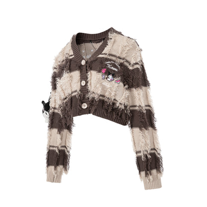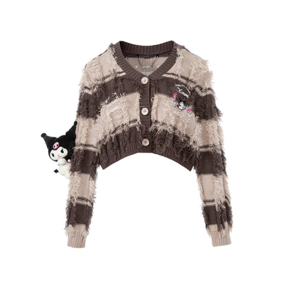13DE MARZO Kuromi Bear Stripe Knit Cardigan