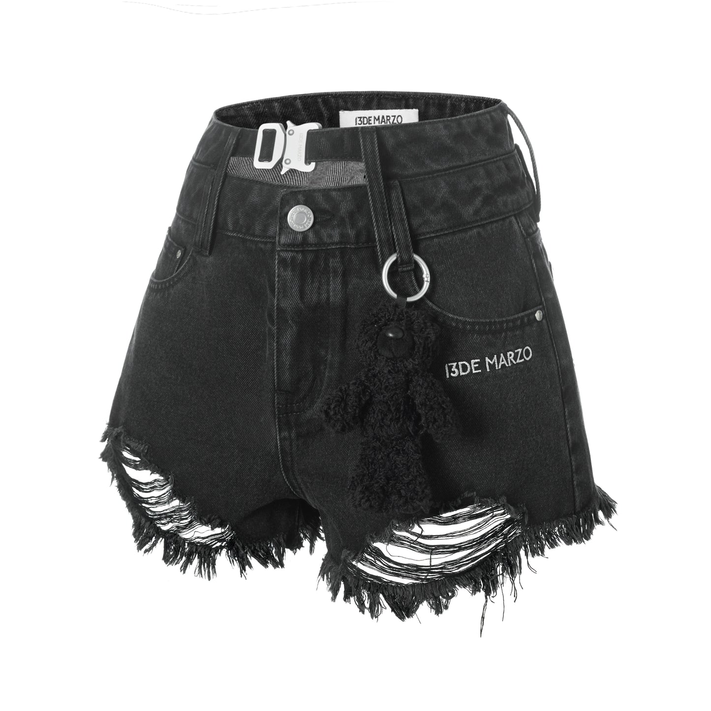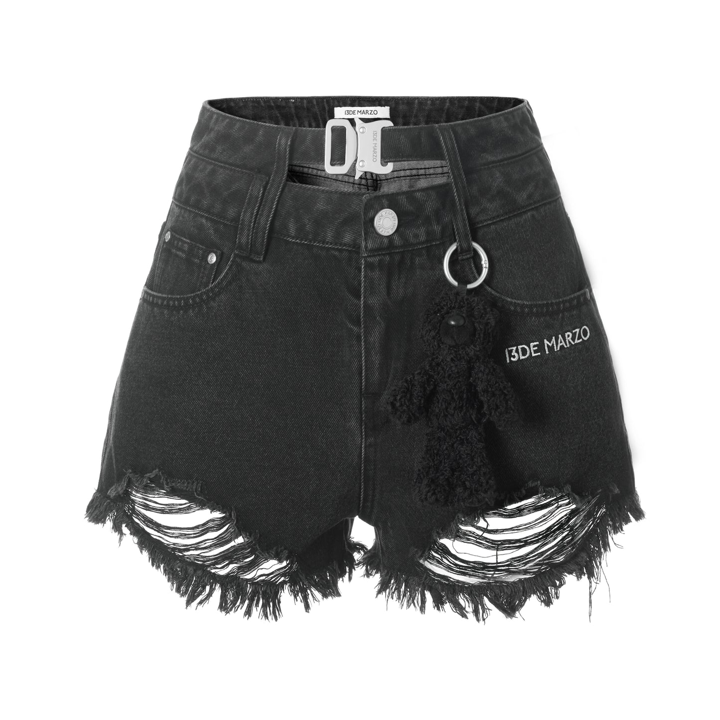 13DE MARZO Logo Broken Denim Shorts