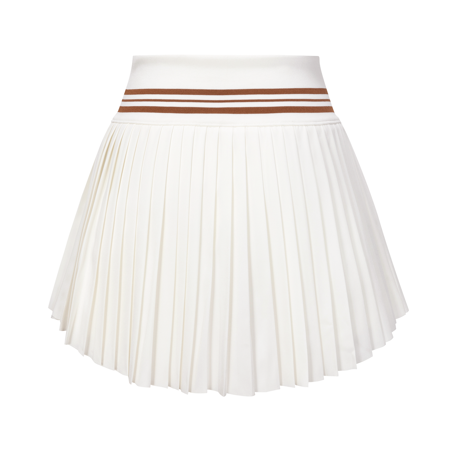 Crafted from a lightweight and breathable fabric, this white tennis skirt offers a soft touch and unrestricted movement—perfect for active summer days. The finely pleated hem adds dimension and a dynamic, sporty flair, while the built-in inner shorts provide added security and comfort for worry-free wear.