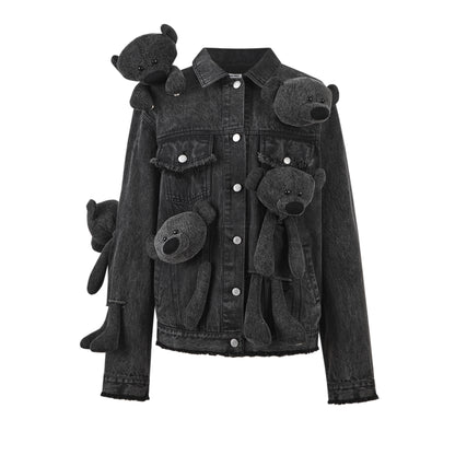 13DE MARZO Multiple Stuffed Bear Denim Jacket