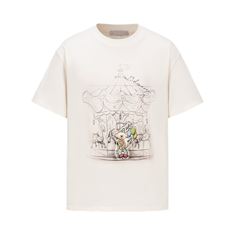 With its gender-neutral design and distinctive carousel-and-teddy-bear graphic, this piece stands out with strong visual recognition, making it ideal for those seeking individuality and a unique style without repetition.