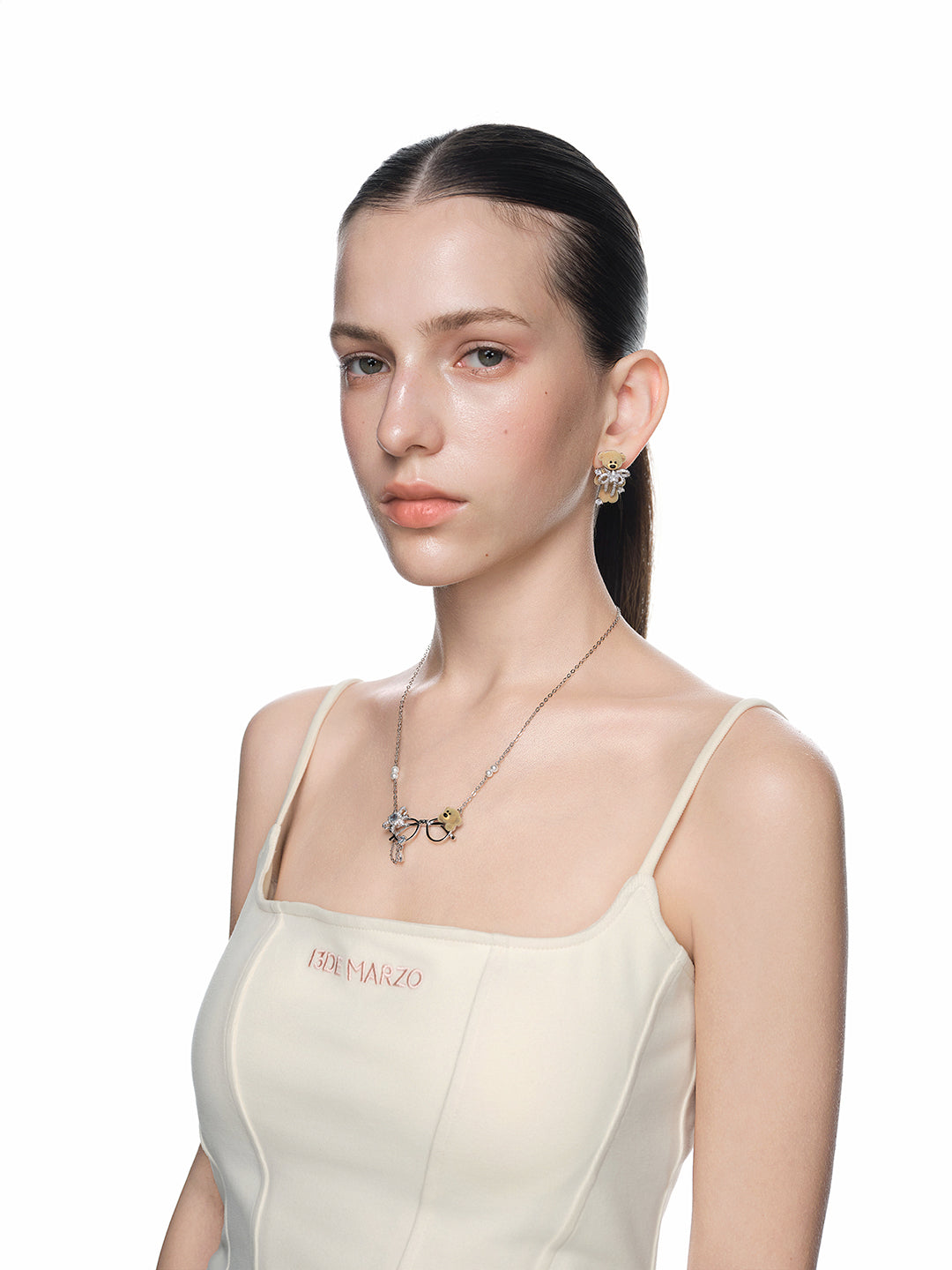 As the weather turns colder, let this little teddy bear — snugly wrapped in its scarf — return home with you. A symbol of warmth and gentle companionship, it brings a comforting presence through the winter season. Thoughtfully designed to evoke care and affection, this piece captures 13DE MARZO’s signature balance of innocence and emotional warmth, making it a tender reminder to keep cozy and feel cared for on chilly days.