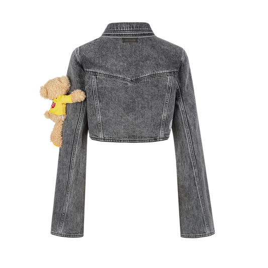 13DE MARZO Lay's Bear Washed Denim Short Jacket
