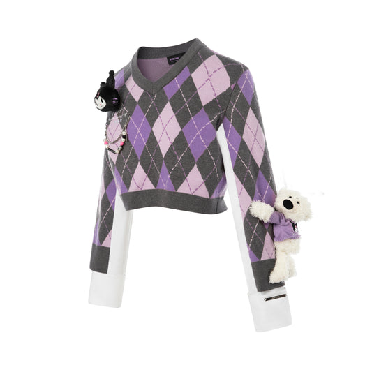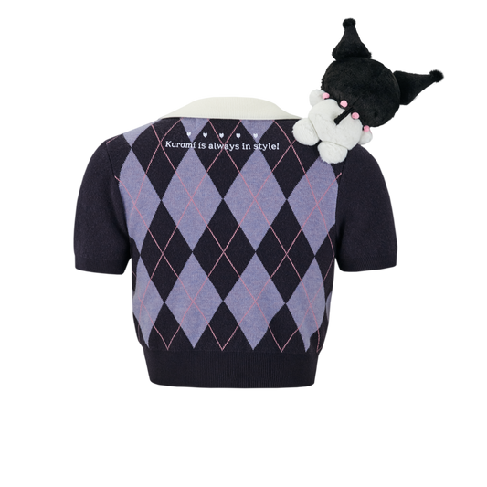 13DE MARZO Kuromi Bear Dimond Check Sweater