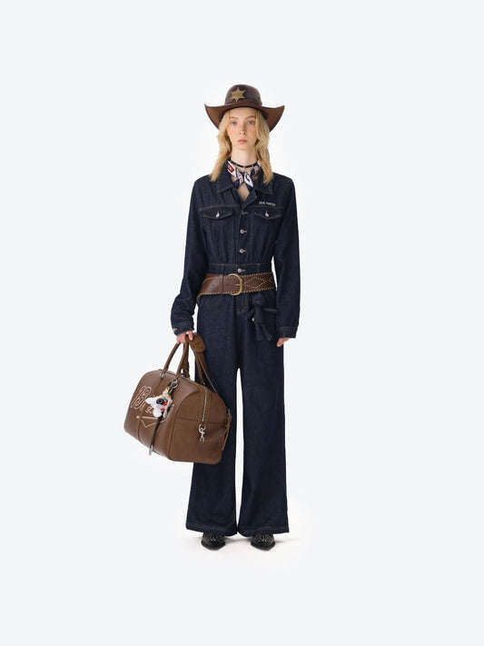 13DE MARZO Bear Denim Jumpsuit Navy Blue