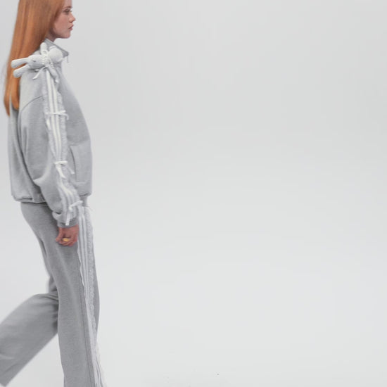 13DE MARZO Bear Lacy Knot Zip Sweatshirt