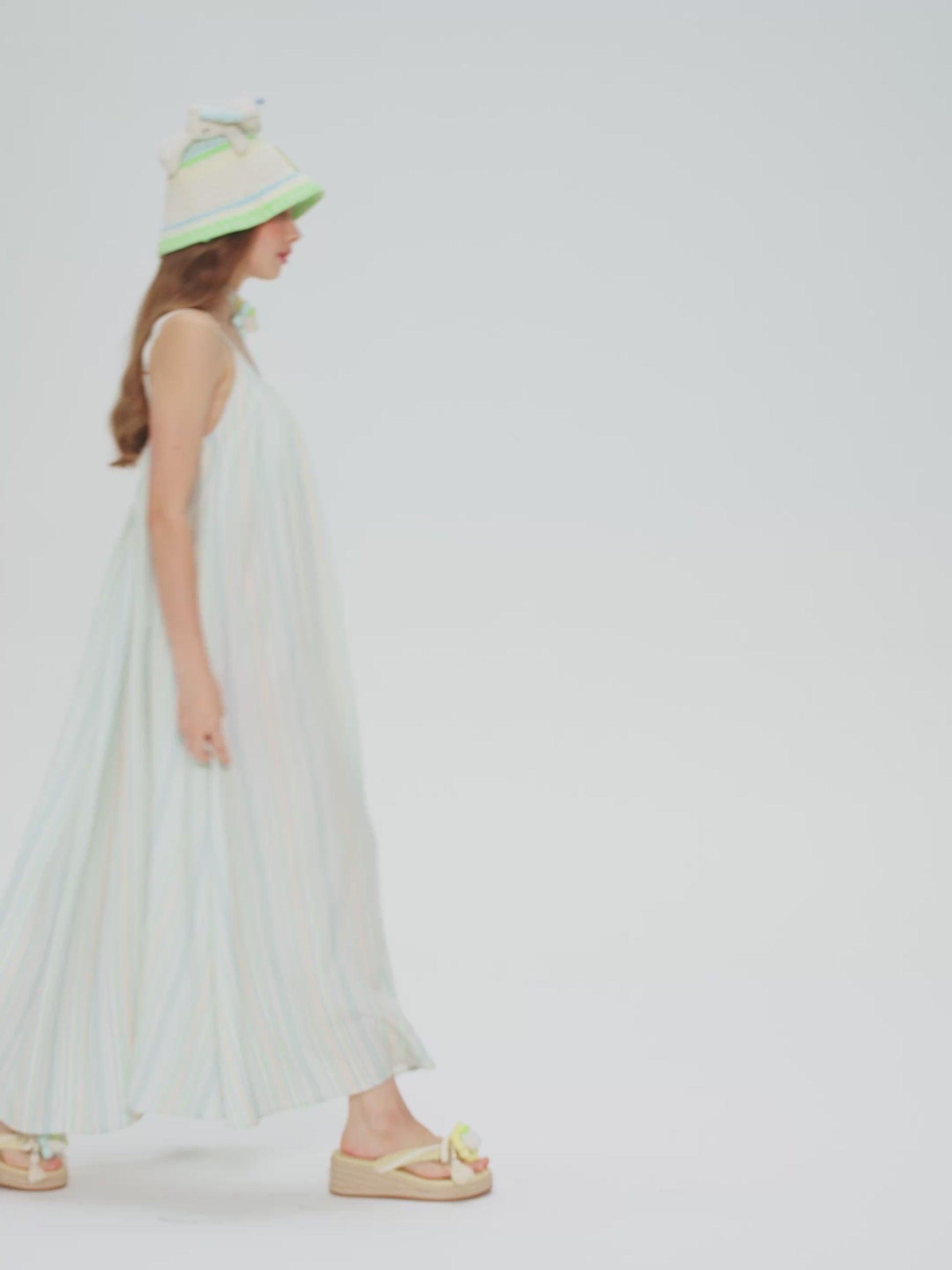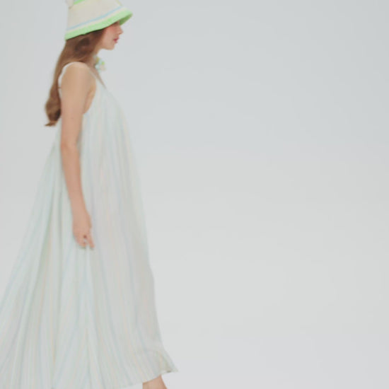 The soft silhouette of this crochet bucket hat is pure summer therapy. Fresh yellow, green, and blue stripes weave together like threads of a sunlit sky, capturing the season's warmth in every stitch. Adorned with an irresistibly cute butterfly bear charm, it brings an extra dose of sweetness to your look. Whether shielding you from the sun or stealing the spotlight as a style accent, wearing it feels like carrying a gentle summer day right on your head.
