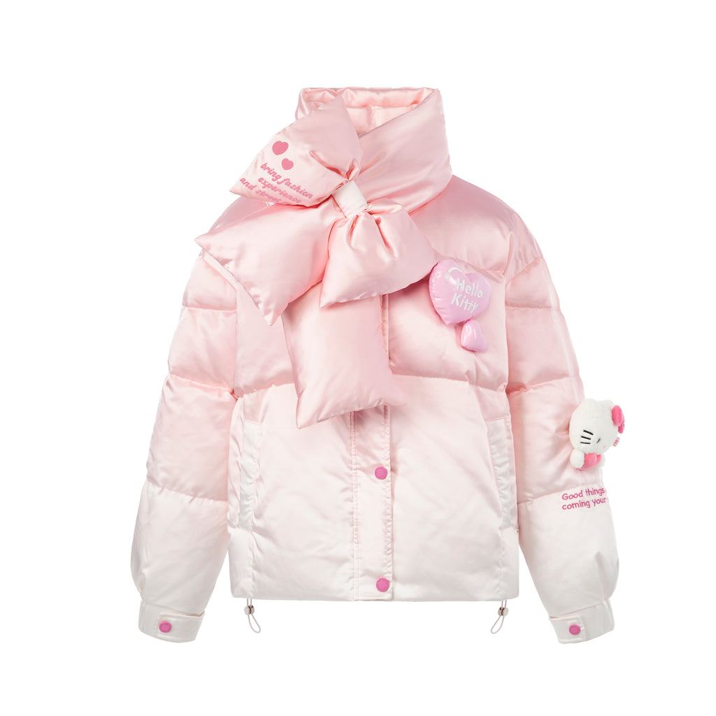 13DE MARZO Hello Kitty Bear Scarf Faded Down Jacket