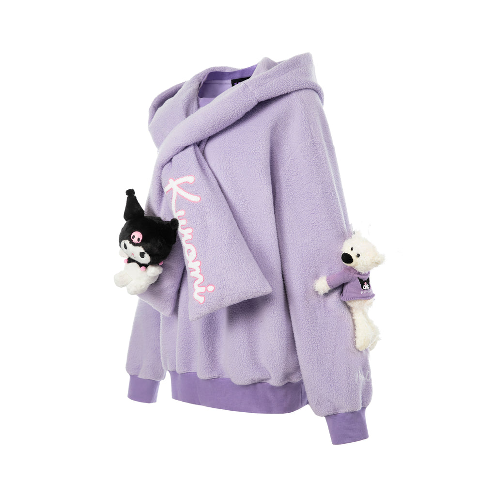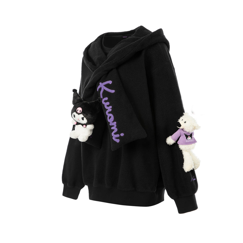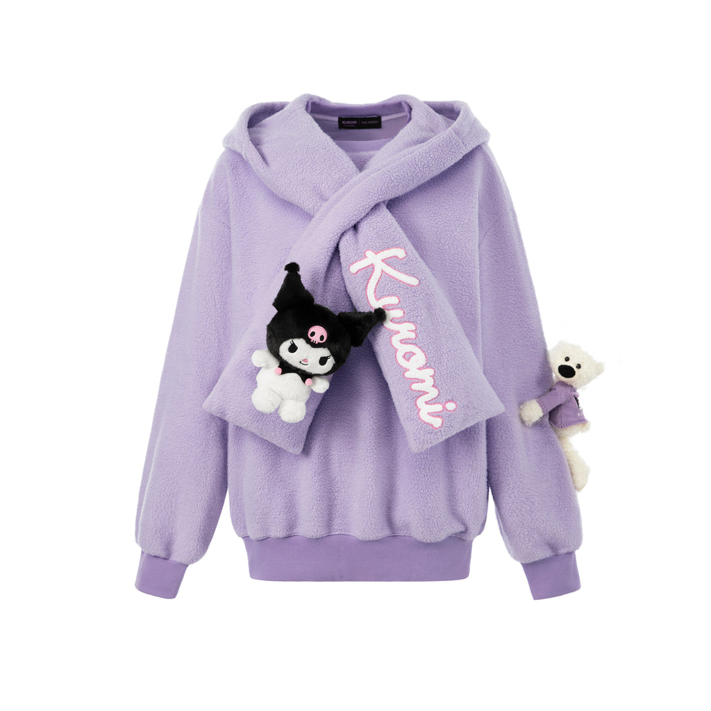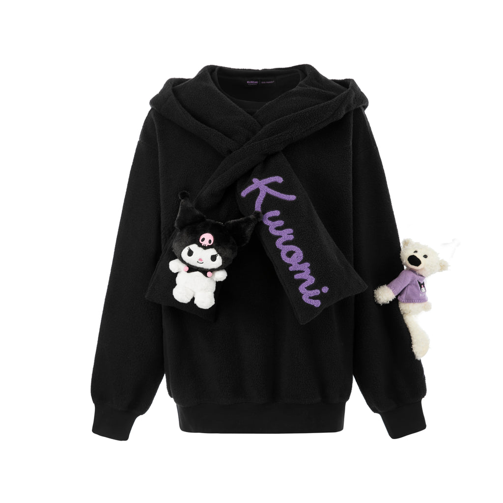 13DE MARZO Kuromi Bear Scarf Fleece Hoodie