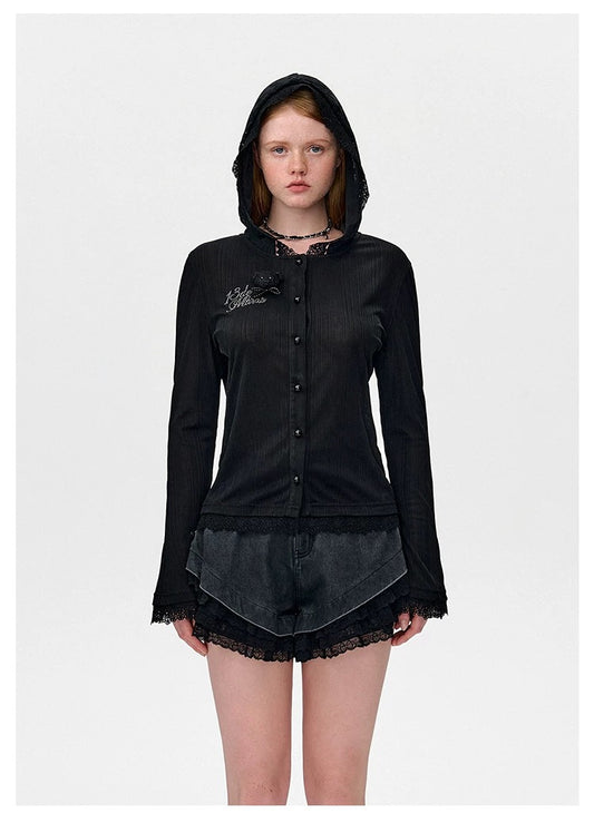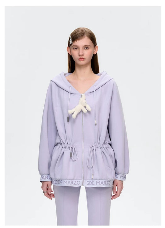 13DE MARZO Doozoo Hollow Heart Zip Hoodie