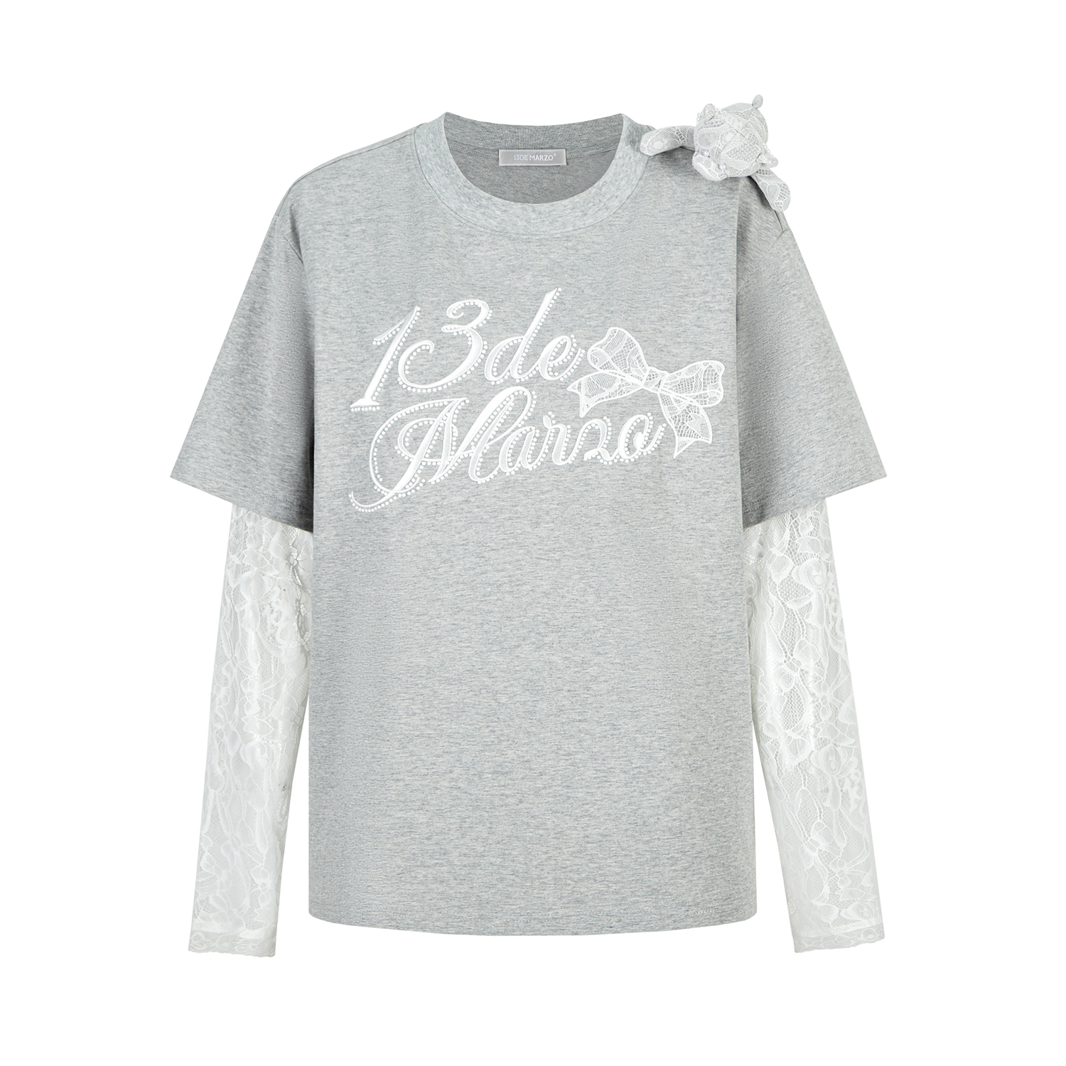 13DE MARZO Splicing Shirt Asymmetrical Shoulder Sweater