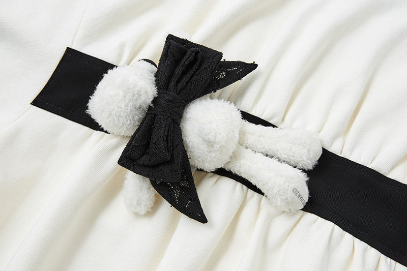 13DE MARZO Bow Detail Bear Print Sweatshirt