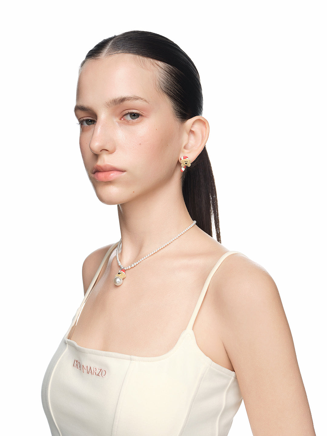 13DE MARZO Cozy Christmas Candy Cane Bear Ear Studs