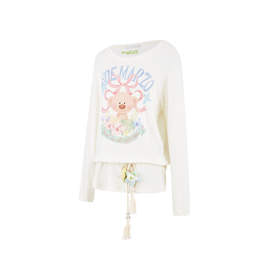 13DE MARZO Fair Isle Bear Off Shoulder Sweater Beige