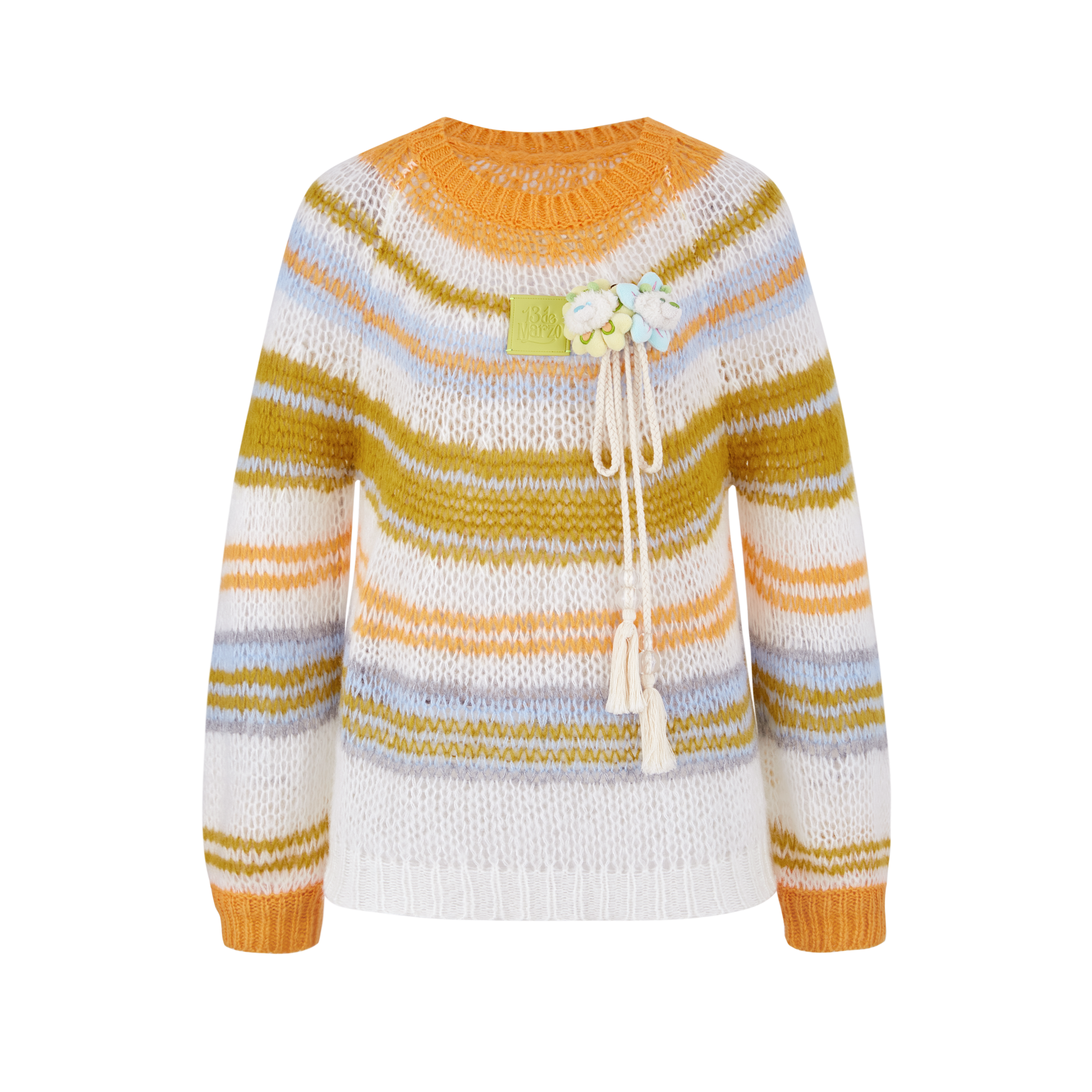 When Provence is brushed with the first colors of spring, the designer paints with yarn—stitching the region’s quiet romance and lazy elegance into this open-knit striped sweater. More than just a wardrobe piece, it reads like a love letter to spring, turning every movement into a gentle scene.
